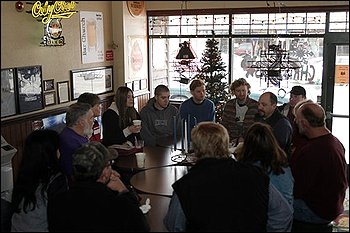 Chris Fletcher, 2010 Bethel Christian Ministries major, leading 'The Bar Church' in Two Harbors, MN (Julia Cheng)