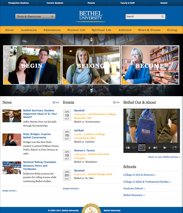 The Chronicle of Higher Education recently noted Bethel University (where I teach) for our exemplary work in bringing our website into the 21st Century. Bethel’s Director of Web services, Michael Vedders, was instrumental in transforming our site from something, well, “horrible,” to “state-of-the-art,” and is quoted extensively in the article.